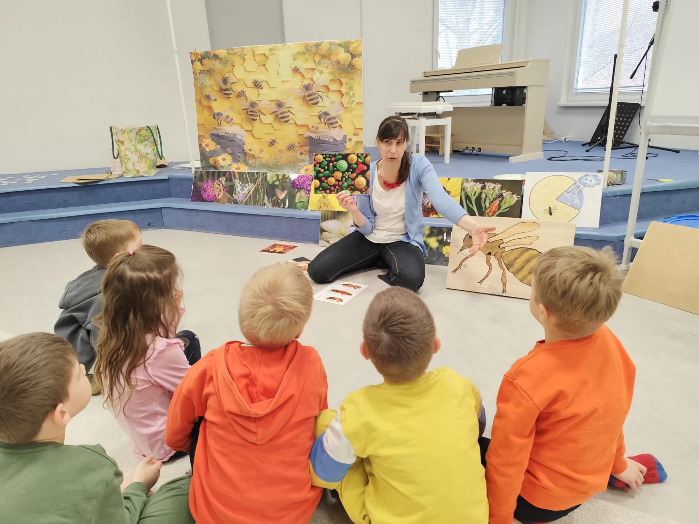 Žáci z 1. třídy si užili krásnou přednášku o životě včel plnou her a zábavy. Dozvěděli se proč jsou včelky tak užitečné pro celý svět. Díky tomu, že opylují květy, mají rostlinky plody. Ukazovali jsme si jak včelka létá, jak se rodí nové a jaké mají pracovní role během svého života. Děti si vyzkoušely jak je pracné nosit nektar do úlu, ze kterého máme dobrý medík.